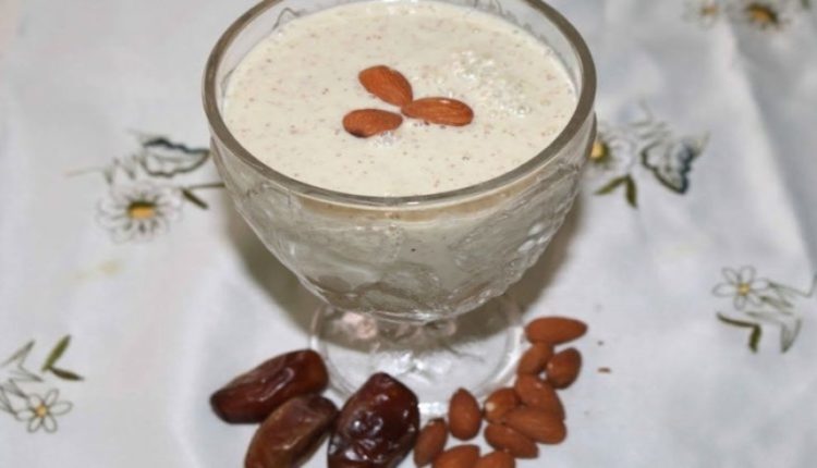 مكونات الخلطة:10 حبات من التمر+3 حبات كبيرة من الموز+3 أكواب من الحليب+ملعقتين من بودرة الحليب+20 حبة زبيب+3 ملاعق من العسل+ حبات من اللوز