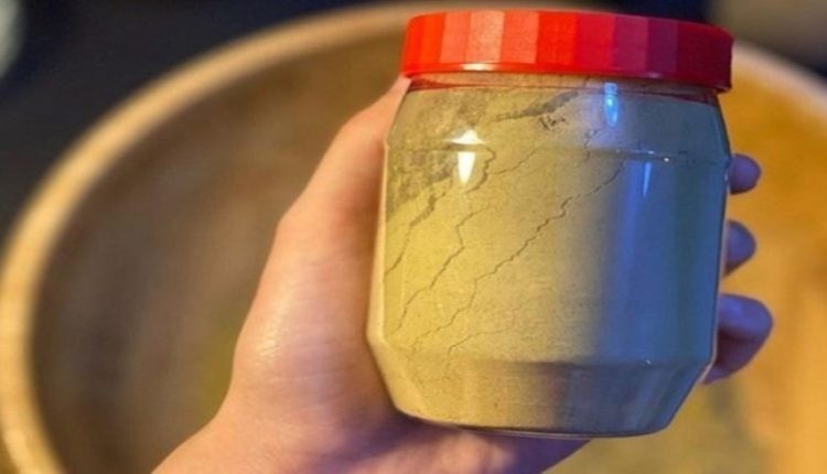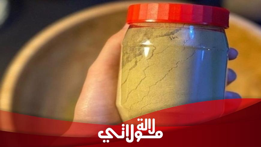 المكونات : ملعقتين من الغاسول الأخضر+ ملعقة من الحلبة المطحونة + ملعقة من الحمص المطحون + ملعقة من الفول المطحون + ملعقة من صابون الأعشاب + ملعقة من الأرز المطحون + كمية من عصير الليمون لخلط المكونات أو ماء الورد حسب الرغبة.