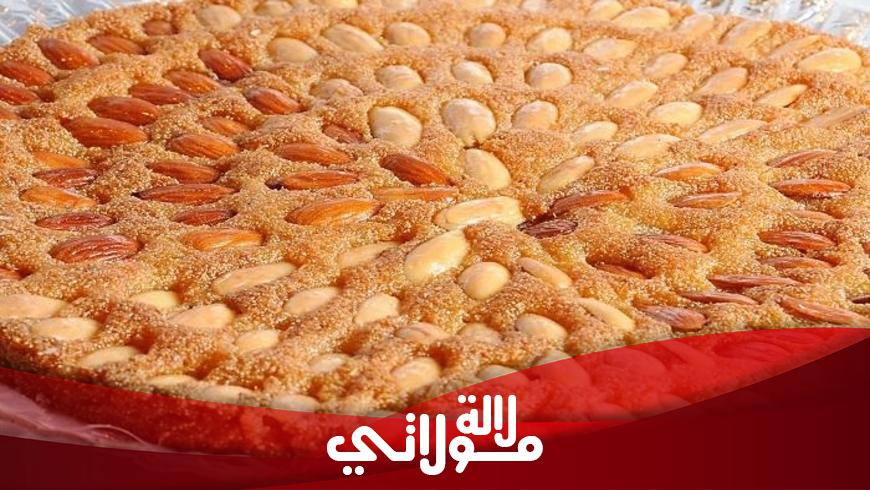 المقادير:2 كوب دقيق سميد، نصف كوب سمنة، نصف كوب دقيق، نصف كوب سكر، كوب زبادي، معلقة صغيرة بيكنج بودر.سيرو ساخن، 2 معلقة كبيرة سمن+ للوجه: فول سوداني.