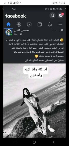 تداول اليوم الأحد، نشطاء على منصات التواصل الاجتماعية، صورة شابة قيل إنها قتلت في الهجوم الروسي على أوكرانيا، ما أثار حفيظة الشابة المعنية.