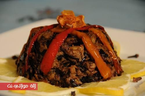 – نضع معجون البدنجان وسط صحن التقديم ويزين برقائق الفلفلة المقلية ثم رقائق الثوم المقلية من الاعلى ويزين بقطع الحامض جوانب المعجون .