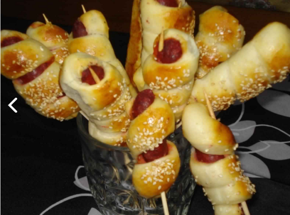 خذي شريط من العجينة ,ولفي حوله النقانق ,حتى تكملي كل العمل