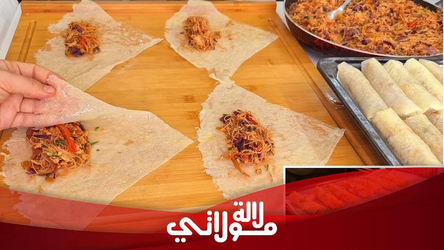 من مطبخ تيما / المكونات: حبتي بصل أخضر ،جزر وفلفل ألوان ربع حبة ملفوف 300غ صدر ديك رومي أو دجاج توابل:ملح ،فلفل أسود،زنجبيل،عطرية السمك صلصة كاتشوب،صوجا وصلصة الحار شعرية الصينية ملعقة كبيرة نشا +ملعقتين كبيرتين ماء ورقة البسطيلة