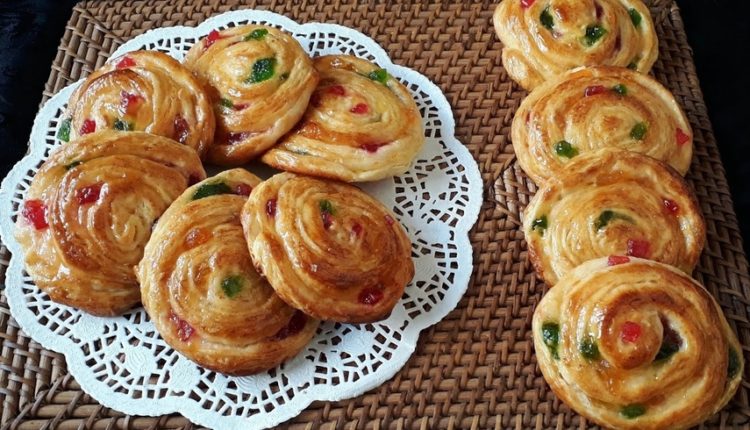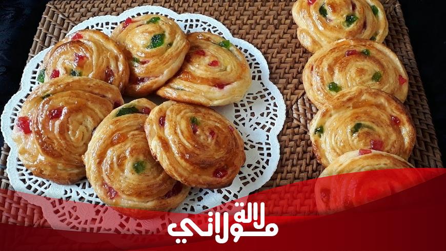 طريقة التحضير: نفرد العجينة جيدا ثم نوزع عليها كريمة الباتسيير ونفردها جيدا على وجه العجينة، ثم نوزع عليها أيضا الفواكه المعسلة.ندهن جوانب العجينة بالبيض المخفوق، ونضغط عليها بالأصبع، ثم نلف العجينة حتى نحصل على رول طويل نقطعه إلى حلقات، ونرص هذه الأخيرة في صينية الفرن.