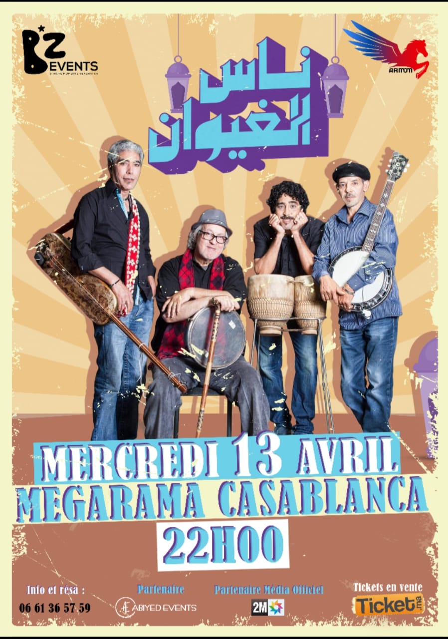 من المنتظر أن يلتقي الجمهور المغربي، وخاصة الجمهور البيضاوي، مع فرقة الغناء المميزة ” ناس الغيوان ” التي غابت كثيرا عن الساحة الفنية، والتي أصبح الجمهور المغربي متعطشا لفنها وأغانيها الراقية والخالدة، وذلك يوم غد الأربعاء 13 أبريل 2022، انطلاقا من الساعة العاشرة ليلا، بمسرح سينما ميغاراما بمدينة الدار البيضاء.