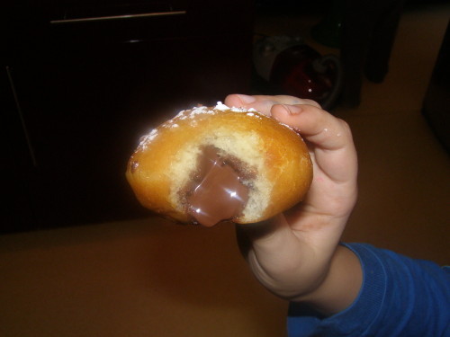 بعدما تخمر مزياان نخويوها من الهواء ونسرحوها بالدلاك متكونش رقييييقة بزاف شوية ونحطو وسطها العمارة لي بغينا انا هنايا عمرتها بالشكلاط و المربى نعاودو نغطيوها بالعجين عاد نقطعوها