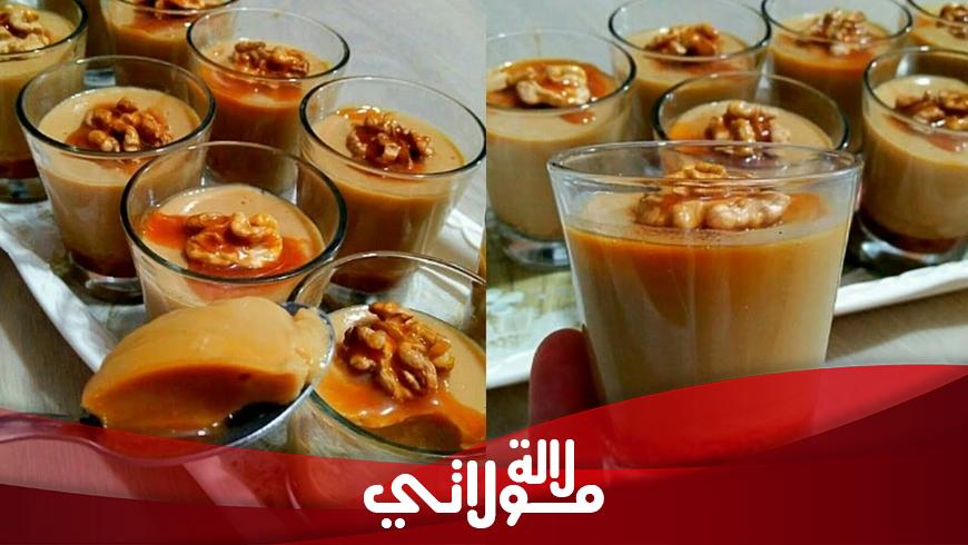 من مطبخ شهيوات ياسمينة / المكونات: لفلون يعني بدرة لكريم كرميل نصف لتر حليب مايعادل كوبين ملعقتين نشا 30 غ فلون زون 50 غ بالسكر بذوق الكرميل علبة ديسير كرميل+صلصة الكرميل الوصفة فاول الفيديو بسكويت مع زبدة مذابة جوز للتزين او مكسرات حسب المتوفر+صلصة الكرميل الوصفة فاول الفيديو بسكويت مع زبدة مذابة جوز للتزين او مكسرات حسب المتوفر.