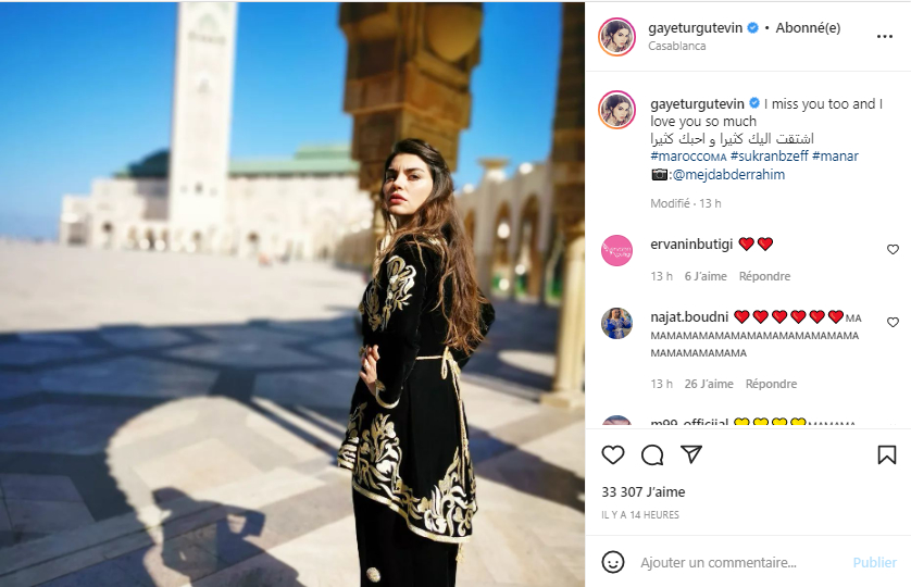اختارت الفنانة التركية غاي تورغورت بطلة مسلسل سامحيني الشهيرة باسم منار، موقع تبادل الصور والفيديوهات إنستغرام لتعبر عن اشتياقها للمغرب والجمهور المغربي.