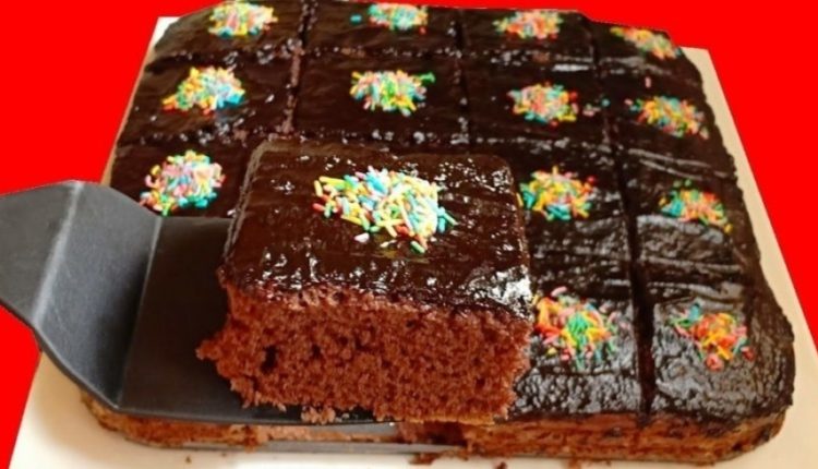 طريقة التحضير:ندهن صينية بالزبدة او الزيت ونرش الطّحين داخلها ونتركها جانبا و نضع الطّحين والباكينج باودرو الكاكاو ونخلطهم جيدا و نضع البيض والفانيلا بوعاء، ثم نبدأ بالخفق جيدا بالخلاّط، ونضيف السكر تدريجيا إلى أن يزيد حجم المزيج ويتكاثف و نضيف جزءا من الطّحين على مزيج البيض، ونحركه بصورة بطيئة جدا (دون استخدام الخلاط، بل بملعقة ).
