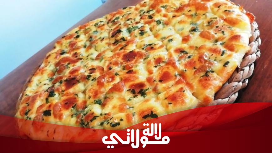 المكوّنات: سبعمئة غرام من الدقيق+ مئتا ملليلتر من الماء الدافئ+ مئتا غرام من كلٍ من: اللبن الزبادي+الزيتون الأسود المقطع قطعاً صغيرة+ ملعقة صغيرة من الملح+ مئة وخمسة وعشرون ملليلتراً من الزيت النباتي+ نصف كوب من زيت الزيتون+ بيضة+ملعقة كبيرة من كلٍ من: الخميرة الفورية+ السكر+ حبة البركة.+حزمة من البقدونس المفروم ناعما+ قرن من الفلفل الأحمر الحار مفروم ناعما+ فص من الثوم المهروس+مئتان وخمسون غراماً من جبنة الحلوم+ أربعمئة غرام من جبنة الكسار التركية (أو جبنة الموزاريلا)+ ملعقة كبيرة من الكبار مفروم ناعما+ صفار بيضة.