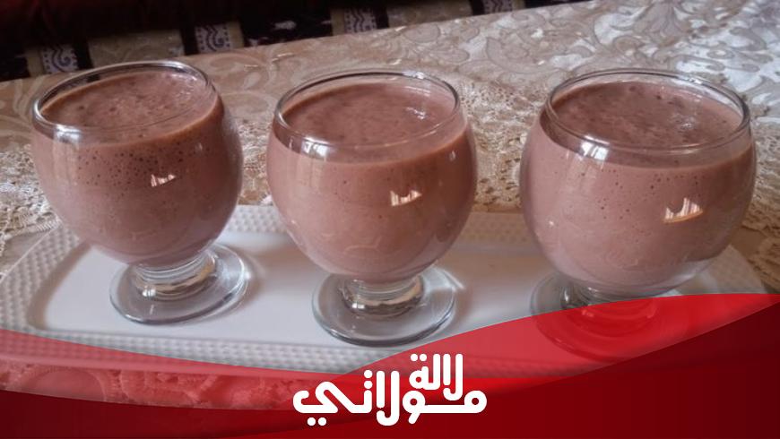 المقادير: نصف لتر حليب+3 ملاعق كبيرة سكر+فلان بنكهة الشوكولا+ياغورت شوكولا+ كأس حليب