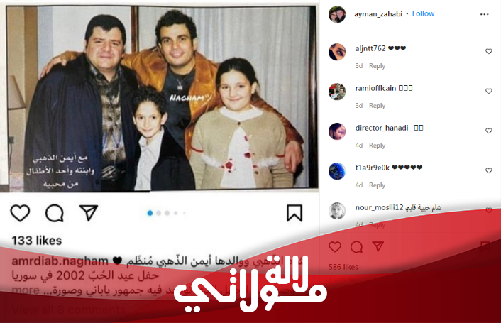 ويظهر في الصورة أيمن الذهبي و ابنته شام رفقة النجم المصري عمرو دياب وذلك أثناء إحياء الأخير لحفل يوم الحب في سوريا عام 2002 .