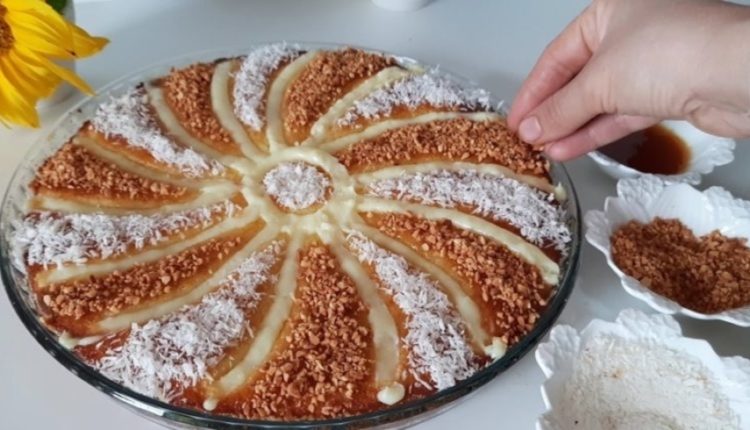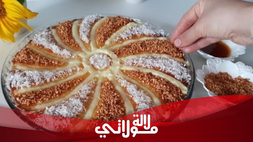المكونات بيضة واحدة نصف كأس سكر80غ نصف كأس زيت 80مل كأس حليب 160مل علبة ياغورت فانيلا 110غ فانيلا نصف كأس جوز الهند قبصة ملح كأسان سميد 250غ 16خميرة الحلوة مدة الطهي بين 30و35دقيقة على نار مهيلة 180درجة.
