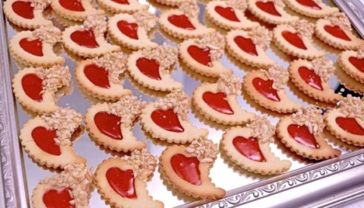 المكونات: كوب من مربى الفراولة أو المشمش للتزيين. صفار أربع حبات من البيض. ملعقة صغيرة من الخميرة الفورية. ملعقة صغيرة من الفانيلا. 250 غرامًا زبدة. 200 غرام سكر بودرة. 500 غرام من الطحين.