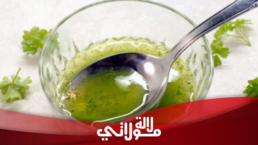 المكونات :ملعقة من العسل الطبيعي+ملعقة من زيت الزيتون+ملعقة من بودرة قشور الرمان+ملعقة من البقدونس