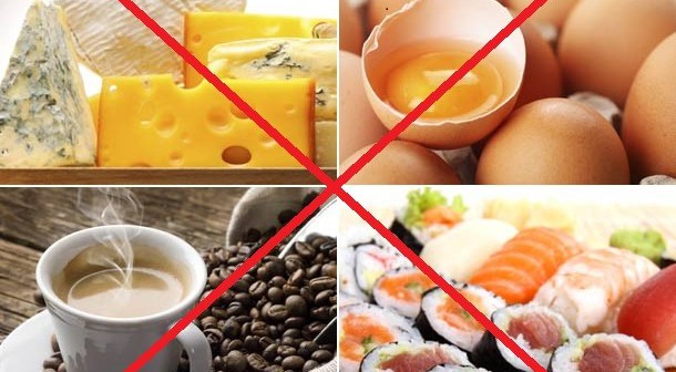 ليس كل الاجبان مفيدة اثناء الحمل فبعضها يضر الحمل والجنين وهى الاجبان الغير معلبة ومصنعة بدون بسترة الحليب مثل الجبنة الرومى فهى تحتوى على بكتريا كذلك الجبن الابيض السايب ولكن الجبن المعلب الذى تم بسترة حليبة هو المفيد ايضا خطر على الحامل والجنين تناول الحليب غير المبستر لانه حتى لو غلى اكثر من مرة يحتوى على العديد من الميكروبات ايضا البيض النىء والسوشى او السمك النى كما ان الكافين غير محبب للحامل لانه يدر البول ويجف الجسم ويساعد على السهر والارق