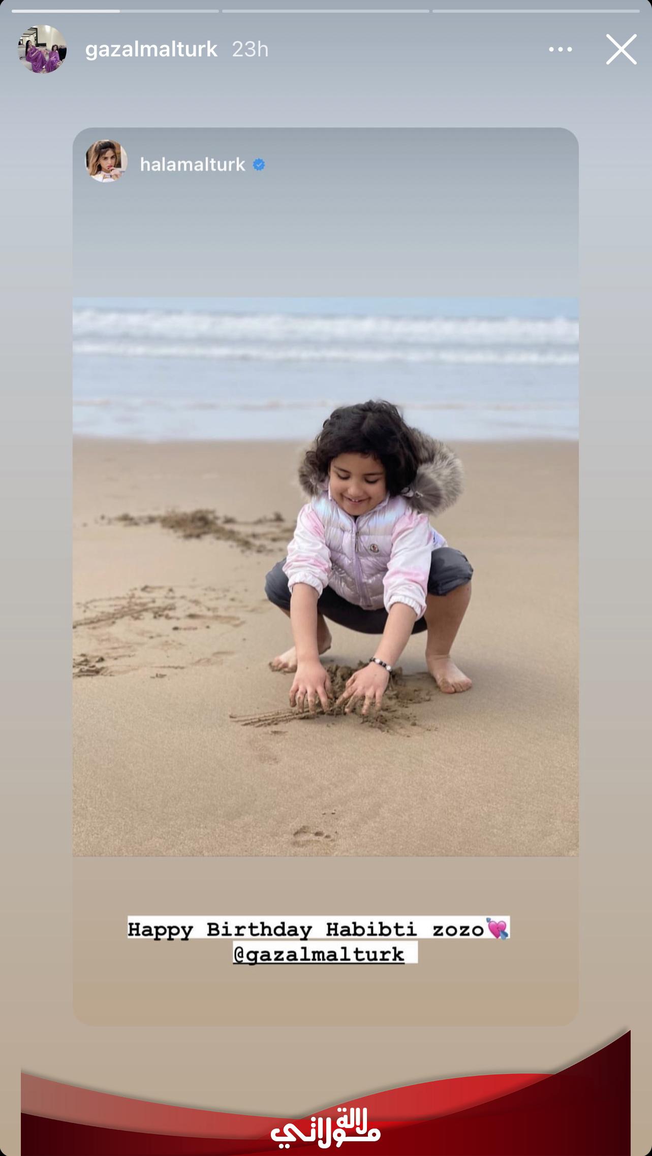 رغم كل الخلافات التي تشهدها عائلة الترك وعائلة بطمة، ورغم كل المشاكل بينهم، إلا ان الفنانة الشابة حلا الترك لا تتوانى في تقديم التهاني لأختها الصغرى غزل في كل مناسبة عيد ميلاد لها.