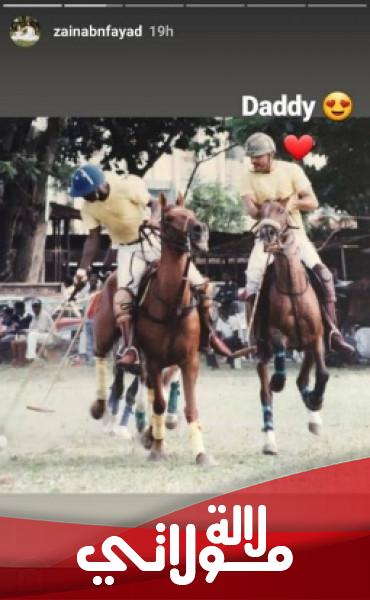 بمناسبة الاحتفال بـ عيد الأب قامت زينب فياض ابنة النجمة اللبنانية هيفاء وهبي بالاحتفال بالمناسبة حيث نشرت صوراً عبر “ستوري” حسابها الرسمي على موقع التواصل الاجتماعي “إنستجرام” وظهر في الصور والدها وهو يمارس لعبة “البولو”.