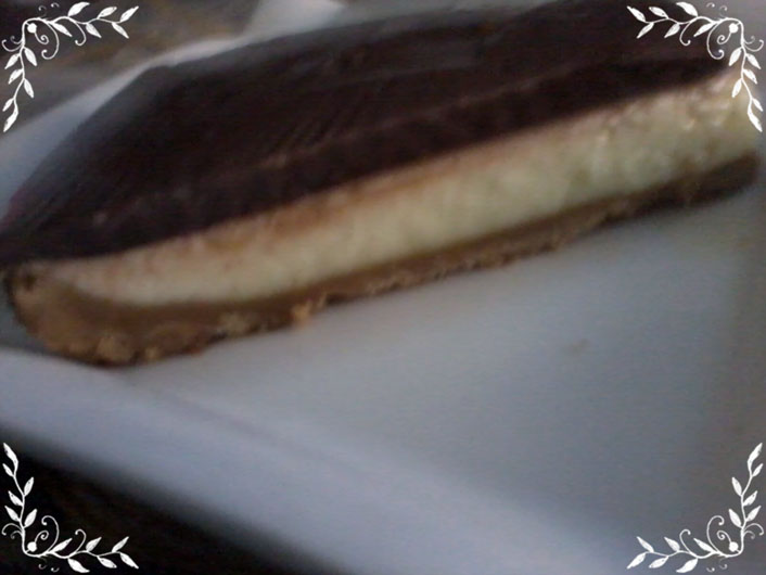 2 أكياس بسكويت +130 غرام زبدة مذوبة نخلطهم جيدا و نبسط الخليط في مول يفتح من الجوانب و نذخله للثلا جة