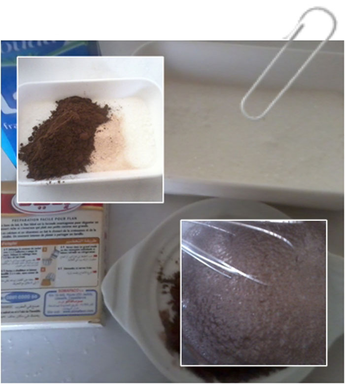 نخلط النواشف مع بعضهاو نضيفها على الحليب نخلطها ثم نضعها فوق النار حتى يغلى الحليب