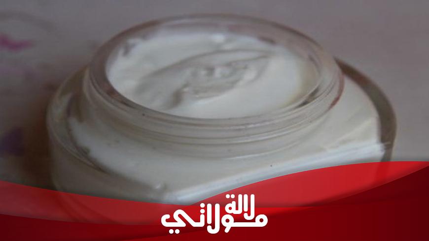 المكونات : ملعقة من الحليب الجاف + ملعقة من الياغورت الطبيعي + مثلث الجبنة الخاصة بالدهن.