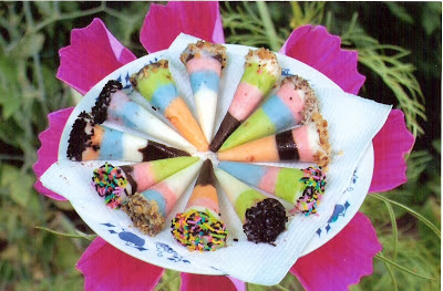 نذوب الشكلاط الأبيض “حمام مريم” على البخارمع قليل من الزيت يقسم على 4 ثم نضيف عليه لوز غبرة و فاني و في كل آنية نضيف عليها نقط من الملون و النسمة مثلا الأحمر نسمة الفريز الأخضر نسمة البستاش و نخلطه شيئا فشيئا حتى يندمج الخليط و يبقى خفيفا نأخد بابي ألمنيوم أو ورق السولفاغيزي نعمل منه مربعات صغار ثم نجعلهم مثل الكورني نصب في القعر قليل من شكلاط حسب اللون المرغوب فيه و بعد أن يبرد نضيف عليه قليل من لون آخر و هكذا إلى أن يملئ الورق بالكامل في الأخير و بعد أن يبرد نزيل الورق و نضع رأس الكورني في الشكلاط و نمرره في الفرمسيل أو الكاوكاو مهرمش أو الكوك أو أي شئ آخر حسب الرغبة .