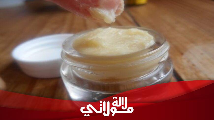 طريقة التحضير:نمزج المكونات كلها حتى نحصل على خليط متماسك ثم نضعه على المناطق الحساسة ونتركه لمدة 20 دقيقة بعد ذلك نشطفه بالماء الفاتر ، تكرر هذه العملية كل اليوم لمدة اسبوع للحصول على نتيجة مبهرة.