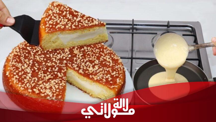 المقادير بيضة واحدة رشة ملح 2 ملاعق كبيرة سكر خميرة الحلويات أو بيكينج باودر 12G نكهة الفانيلا 7G نصف كأس زيت 75ML 3 كؤوس سميد 375G كأسين حليب 300ML الكريما: كأسين حليب 300ML 2 ملاعق نشا 3 ملاعق سكر 7.5 غ فانيلا 110 غ ياغورت او زبادي بنكهة الفانيلا القطر: 150ماء 150ML نصف كأس سكر75G دوائر الحامض يمكن تعويضها بي نكهة الفانيلا.