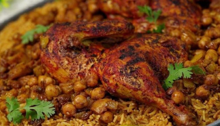 المكونات 1 دجاجة متوسطة الحجم 1 بصلة كبيرة مفرومة ناعم ربع كوب زيت بهارات صحيحة ( ورق غار ـ قرفة ـ كمون حب ـ قرنفل ـ لومي) 1 ملعقة كبيرة معجون زنجبيل وثوم 3 طماطم 1 فلفل رومي 1 ونصف ملعقة كبيرة معجون طماطم 1 ملعقة صغيرة من كل من ( فلفل اسود ـ كركم ـ هيل ـ سبع بهارات ـ كمون ـ كزبرة يابسة) 1 ملعقة كبيرة ملح 4 ونصف كوب ماء 1ملعقة صغيرة ملح 3 كوب ارز بسمتي منقوع الحشوة 1 بصلة 3 ملعقة كبيرة زيت زبيب حمص بطاطس مكعبات مقلية ملح هيل ـ كركم ـ سبع بهارات 1 ملعقة معجون طماطم نصف كوب ماء خليط التلميع 1 ملعقة كبيرة معجون طماطم 1 ملعقة كبيرة زيت ملح وكركم 2ملعقة كبيرة ماء الدقوس 4 طماطم مبشورة 1 فلفل اخضر حار 1 ملعقة كبيرة بصل 2 ملعقة كبيرة كزبرة خضراء 2 ثوم 3 ملعقة كبيرة عصير ليمون ملح.