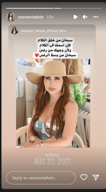 في أول ظهور لها بعد إشاعة طلاقها من زوجها بسبب حذف جميع صورهما معا من حسابها على موقع التواصل الإجتماعي إنستغرام نشرت الفنانة السورية نسرين طافش صورة جديدة لها ظهرت فيها بإطلالة جذابة إرتدت فيها فستان صيفي مبهج تميز بالعديد من الألوان وعلقت على الصورة فكتبت: “سبحان من خلق الكلام فإن اسمك في الكلام ولأن وجهك من رضى سبحان من بسط الرضى “.