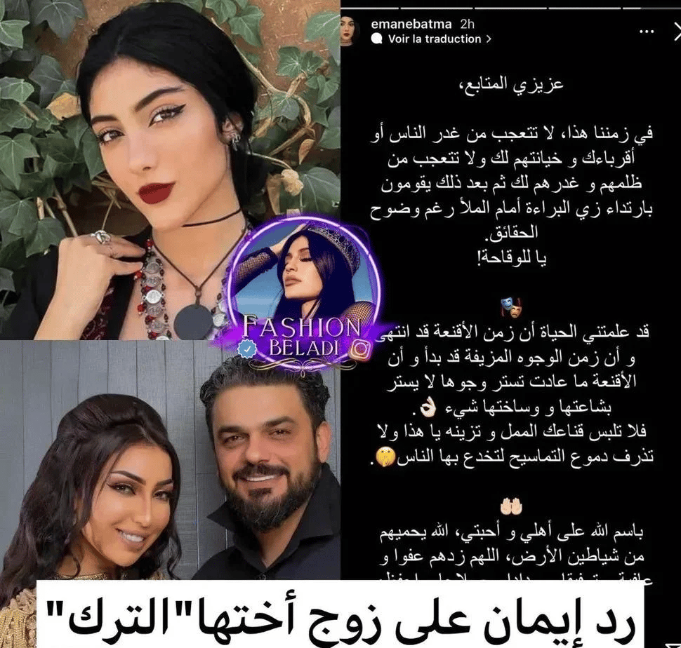 وقد سبق للشقيقة الصغرى إيمان بطمة أن خرجت بتدوينة قبل أيام قليلة احدث ضجة عبر مواقع التواصل الاجتماعي، والتي تحدثت فيها عن غدر الناس، ونشرتها عبر خاصية الستوري والتي كتبت فيها قائلة:”عزيزي المتابع، في زمننا هذا لا تتعجب من غدر الناس أو أقربائك وخيانتهم لك، ولا تتعجب من ظلمهم وغدرهم لك، ثم بعد ذلك يرتدون زي البراءة أمام الملأ رغم وضوح الحقائق. يا للوقاحة”.
