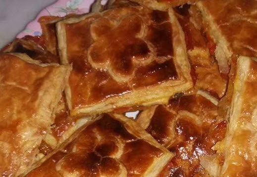 قسمي العجينة على 2 ديري العجين الاول في المول وديري الحشوة الى بغيتي وديري العجين التاني ودهنيه ببيضة وزينيها وقطعيها ودخليها الفران