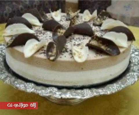 خذي الجزء الثالث , أضيفي إليه القهوة وضعيه فوق الجزء الثاني . دردري عليه البستاش و اللوز . ضعيه في الكونجيلاتور مدة 6 ساعات على الأقل