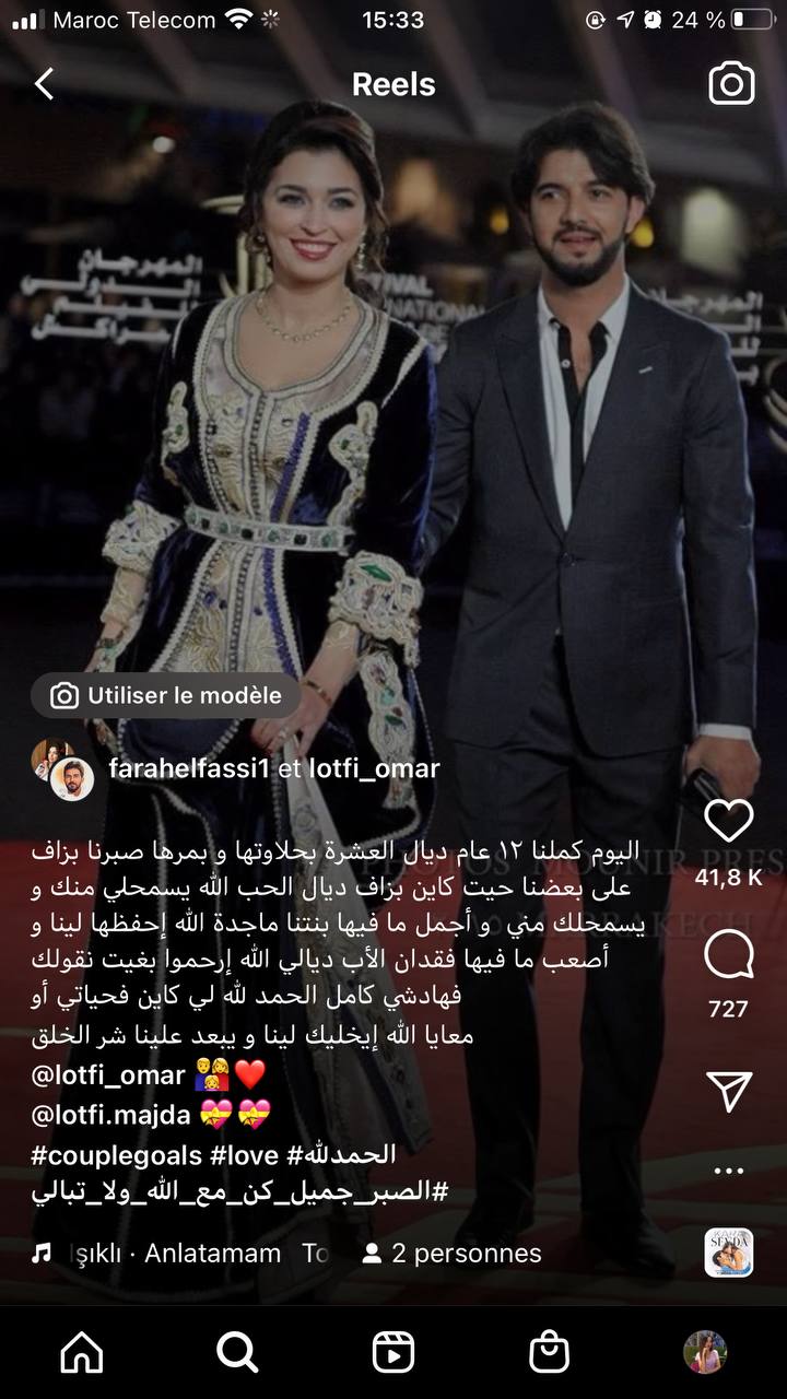 وشاركت فرح الفاسي مع متابعيها على صفحتها الشخصية بموقع تبادل الصور والفيديوهات “أنستغرام”، مقطع فيديو يحمل صورا لها مع زوجها، وأرفقته بتدوينة.