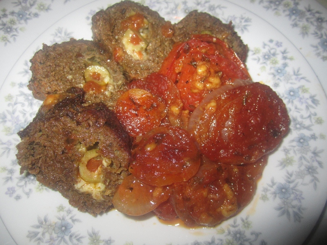 طماطم مقطعة دوائر، بصلة حتى هي، زيت لبلدية، زيتون، فروماج محكوك ومرق أنا حضرتو من: