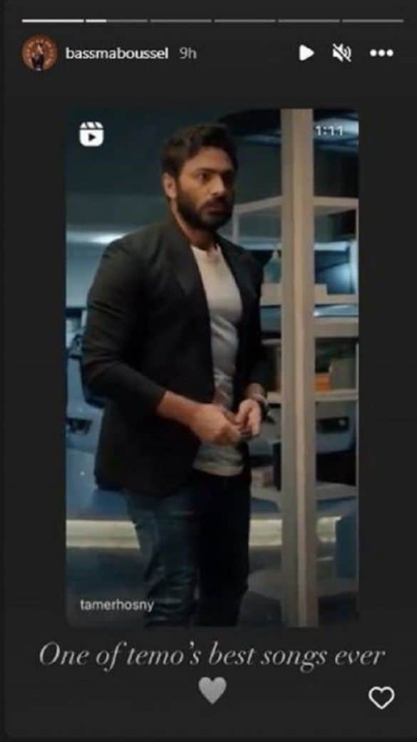 ونشرت بسمة عبر ستوري حسابها على الانستغرام مقطع من أغنية زوجها الجديدة ” حياتنا” من فيلم “بحبك”، وعلقت عليها قائلة: “واحدة من أفضل أغاني تيمو على الإطلاق”.
