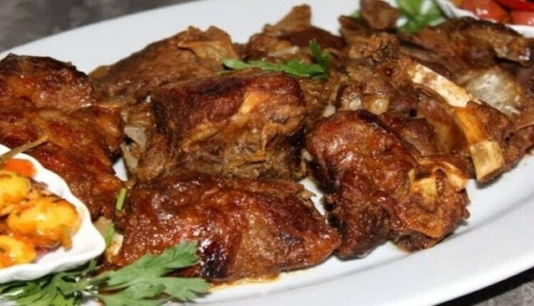 نغلق الطنجرة ونضعها على نار مهيلة جدا تبقى لمدة ساعة إلى ساعة وربع لكي يطهى اللحم جيدا ويطلق الماء وكذلك البصل بعدما يطهى نقدمه وهو ساخن مثل ما هو موضح في الصورة كيجي محمر، رائع، ولذيذ وكذلك البصل كيتعسل وكيجي رائع جدا نرشه بالقليل من المعدنوس للتزيين وبالصحة والراحة.