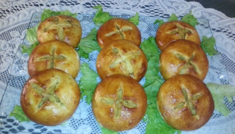 نقوم بوضع القليل من الحشوة في منتصف دائرة العجين ونقوم بلمها وغلقها على شكل مثلث أو معين مع أحكام غلقها حتى لا تخرج منها الحشوة ثم نرصها في صينية مدهونة بالزيت وندخلها الفرن المسخن مسبقا على درجة حرارة 180 لمدة 15 دقيقة حتى يصبح لونها ذهبي أو نحاسي ونخرجها من الفرن ونتركها حتى تهدأ قليلاً ثم نضعها في طبق التقديم وتقدم وبألف صحة وعافية.