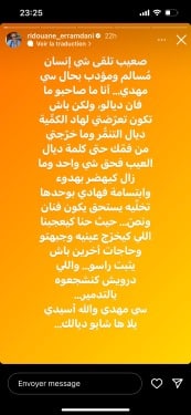 وأنهى تدوينته موجها رسالة للفنان سي مهدي قائلا: “سي مهدي والله اسيدي ها شابو ديالك”.
