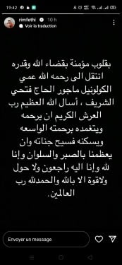 تلقت الممثلة المغربية ريم فتحي، مساء أمس الأربعاء خبر وفاة عمها، والذي أعلنت عنه عبر حسابها الشخصي بموقع “انستغرام”.