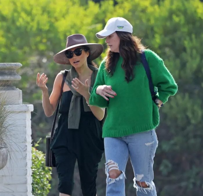 والتقطت صور لميغان، رفقة صديقتها، وهما منهمكتان في حديثهما الخاص، خلال تسوقهما بعض اللوازم المنزلية من متجر Pierre La Fond في مدينة مونتيسيتو التابعة لولاية كاليفورنيا.