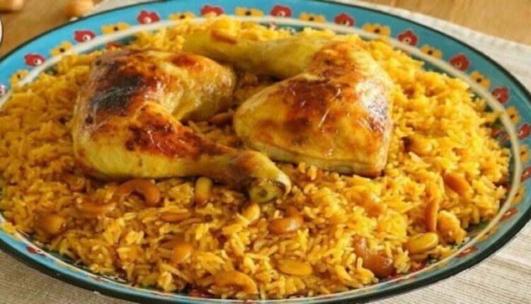 إضافة الطماطم، ومعجون الطماطم، والهيل، والكبش قرنفل، والغار، والقرفة، والفلفل الأخضر، والفلفل الأسود. غمر الدجاج بالماء وتركه ليطهى على نار متوسطة لمدة خمسين دقيقة حتى ينضج. إخراج الدجاج من المرق، وإضافة عليه القليل من الكركم والقليل من زيت الزيتون ووضعه في صينية الفرن، ووضعه في الفرن لمدة 15 دقيقة إلى أن يتم تغيير لونه. وضع مقدار أربعة أكواب ونصف من المرق في قدر على النار ليغلي، وإضافة الأرز مع التقليب بخفة، وترك الأرز يغلي على النار إلى أن تتكون ثقوب على سطحه، ثمّ تغطية القدر وتركه على نار هادئة أربعين دقيقة حتى ينضج تماماً ويتسكر.