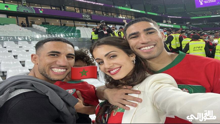 والتقطت عدسات الكاميرات أشرف حكيمي وهو يعانق أسرته الصغيرة التي تسانده دائما وتشجعه في كل المناسبات، وحرصت زوجته على مشاركة هذه الفرحة عبر حسابها الرسمي على موقع تبادل الصور والفيديوهات انستغرام بنشرها صورا جمعتها بزوجها وابنها وشقيق زوجها.