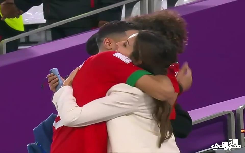 بعد انتهاء المقابلة التي جمعت المنتخب المغربي الوطني بنظيره الاسباني والتي استطاع المنتخب المغربي التأهل لربع النهائي من منافسات مونديال قطر 2022، بضربات ترجيحية انتهت لصالح المغرب بـ 3 أهداف مقابل 0، انتقل أشرف حكيمي كعادته مسرعا الى المدرجات حيث توجد عائلته المتكونة من والدته التي يحرص دوما على تقبيلها وشكرها بعد انتهاء اي مباراة، كما يوجد على مدرجات الملعب شقيقه وزوجته وابنه الصغير.