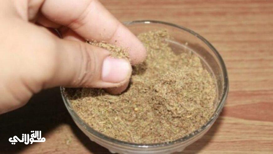 المكونات : 3 ملاعق من بذور الكتان المطحونة + 3 ملاعق من الجوز المطحون + 7 حبات من التين المجفف المطحون + ملعقة صغيرة من حب الرشاد