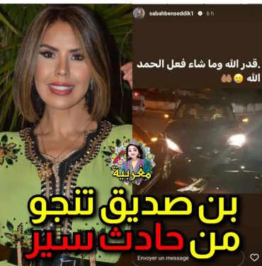 ولم تكشف صباح بن الصديق عن تفاصيل اخرى تهم الحادث الذي تعرضت له، اذ اكتفت بنشر صورة من المكان الذي وقع فيه، وكتبت تدوينة ارفقتها بالصورة قالت من خلالها:” قدر الله وماشاء فعل الحمد لله”.