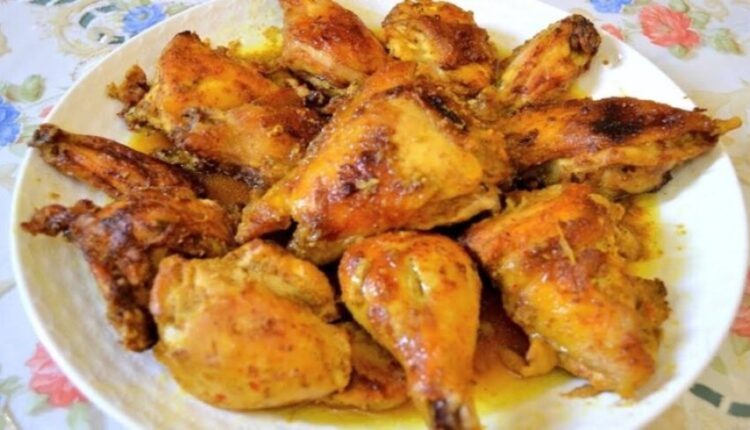 المقادير دجاجة وربع ربع كأس زيت زيتون و زيت نباتي نص حبة فلفل حلو أحمر بقدونس و كزبرة مقطعين ربع حبة حامض مصبر ثوم و عصير نصف ليمونة ملعقة ص مركز الطماطم فلفل حار وزنجبيل فلفل أحمر حلو وفلفل أسود رشة قرفة وخلطة توابل السمك ملح و ورقة غار مقادير البطاطس بطاطس جبن وخبز محمص بودرة الثوم وأعشاب منسمة فلفل حار وفلفل أحمر حلو زيت زيتون و ملح فلفل أسود ملعقة ك زبدة.