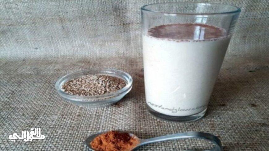 المكونات : حبتين من التفاح + ملعقتين من عسل النحل الطبيعي + عرق سوس + ملعقة من الحبة السوداء + ملعقتين من السمسم الأبيض المطحون + كمية من الحليب+ حبات من التمر