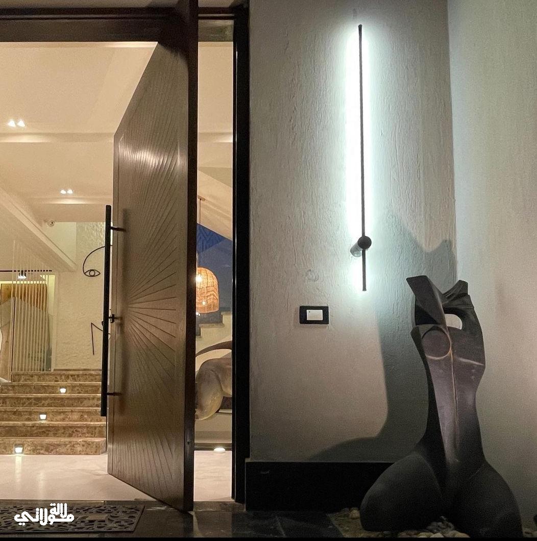 حيث اختارت بسمة بوسيل صالونا من الجلد الأسود مع طاولة معدنية ذات طابع مودرن. واللافت أنها وضعت أغطية من الفرو الأبيض على الأرائك، لإضفاء جو من الفخامة والدفء على المكان.