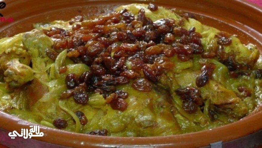 طريقة التحضير: نخلط النَعناع المفروم، والزنجبيل، والملح، والشطة، والكمون، والقرفة، والبابريكا في وعاء كبير، ونضيف قطع الدجاج ونقلب في المكونات حتى تغطى جميع الأجزاء. نسخن الزيت، والزبدة في طاجين على درجة حرارة متوسطة، ونضيف الدجاج بحيث يكون الجلد ملامسا ونترك كل جانب من الدجاج لمدة خمس دقائق حتى ينضج ويصبح بني اللون، وننقل أجزاء الدجاج إلى طبق. نضيف الثوم ونتركه لمدة دقيقة حتى ينضج، ونضيف أغصان النعناع، والزعتر، والمرق، والدجاج، والسوائل الَتي خرجت من الدجاج على الطبق، ونغطي القدر مع تقليل الحرارة لمدة نصف ساعة حتى يصبح الدجاج طريا. نطبخ البصل، والعسل، وعصير البرتقال، واللَيمون في مقلاة مختلفة لعشر دقائق حتى يصبح اللَيمون طريا والسائل سميكا. نتخلص من أغصان النَعناع، والزعتر، ونضع خليط العسل فوق الدجاج، ونزين بالنعناع واللوز.
